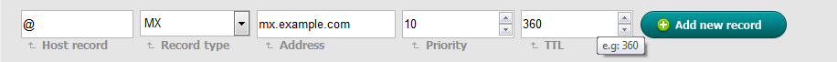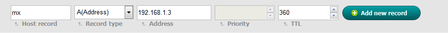 2. Khai báo tên miền con mx.examle.com trỏ về IP của email gateway. Giả sử 192.168.1.3